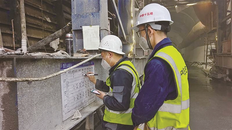 賀蘭山隧道建設者正在填寫當日監(jiān)控量測數(shù)據(jù)。