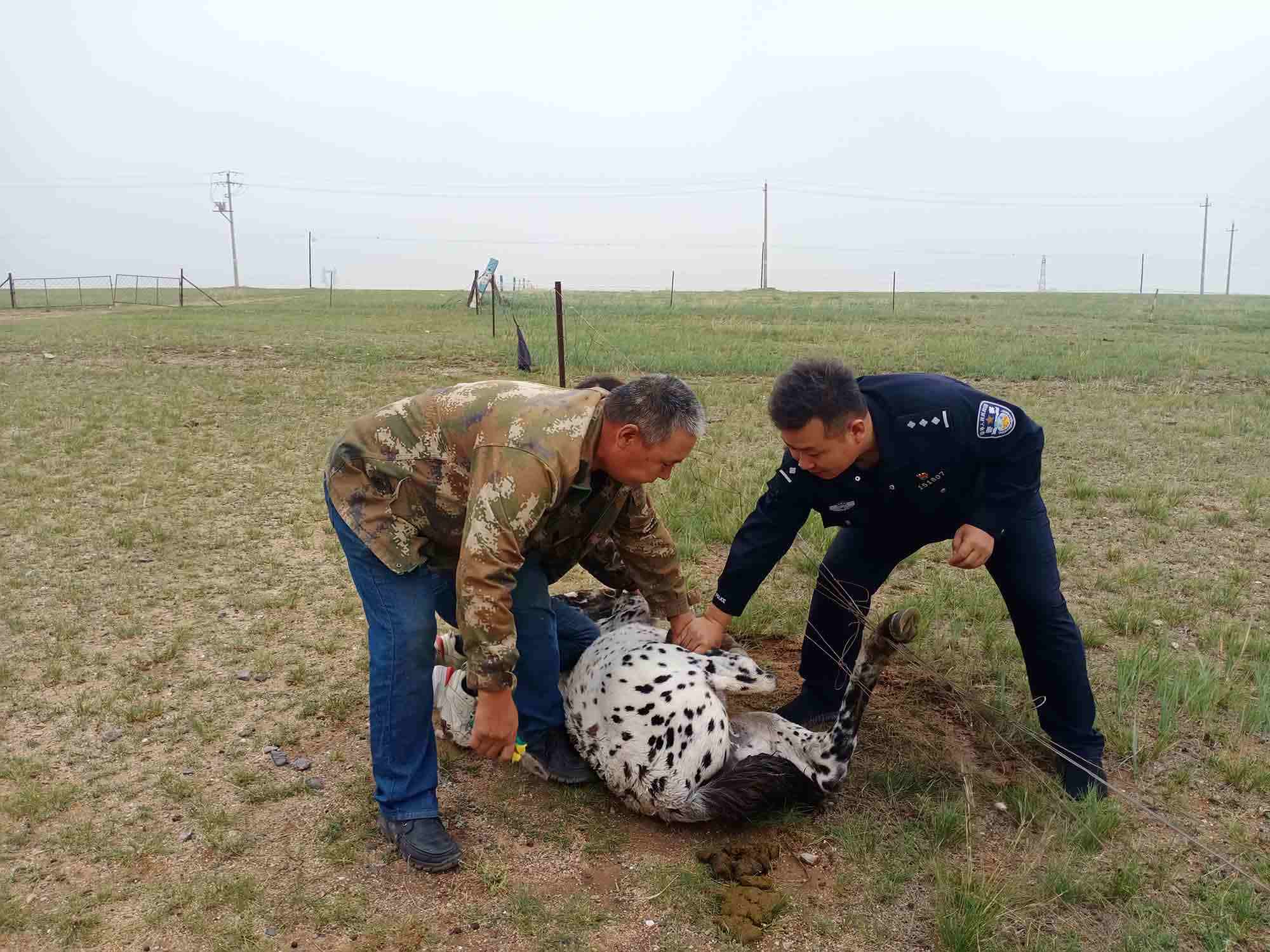據(jù)了解,23日9時(shí)許,該所民警在下鄉(xiāng)走訪途中,遇到牧民群眾的小馬駒被鐵絲網(wǎng)困住無(wú)法掙脫,因鐵絲網(wǎng)網(wǎng)眼密集且十分牢固,牧民多次嘗試無(wú)果。在了解詳細(xì)情況后,為了防止小馬駒受傷并保證鐵絲網(wǎng)不受損害,民警和牧民利用鉗子將纏繞在馬蹄上的鐵絲小心解開,20分鐘后小馬駒“重獲自由”。