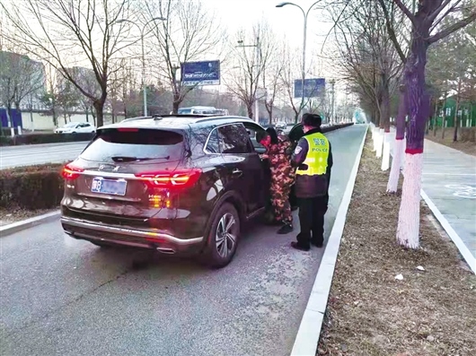 12月20日17時(shí)15分,九原區(qū)交管大隊(duì)第三警務(wù)區(qū)執(zhí)勤民警正駕駛警車在轄區(qū)巡邏清理違停車輛,當(dāng)巡邏至緯四路與經(jīng)二路交叉口時(shí),他們發(fā)現(xiàn)一輛黑色越野車停在緯四路非機(jī)動(dòng)車道內(nèi)且打著雙閃?!翱吹杰嚧蛑p閃燈,想著可能是車上的人有啥困難,我們就把警車開(kāi)到附近,看到一名年輕男子正在車周圍焦急地來(lái)回徘徊,神情特別緊張?!眻?zhí)勤民警說(shuō)。