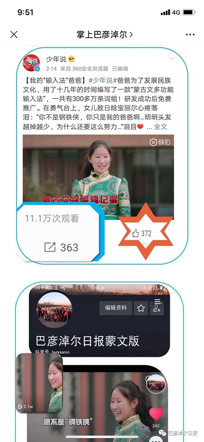 目前巴彥淖爾日?qǐng)?bào)社已經(jīng)形成“報(bào)、網(wǎng)、微、端、視”30多個(gè)平臺(tái)的全媒體矩陣,通過(guò)本土化的新聞作品,吸引了350萬(wàn)粉絲關(guān)注巴彥淖爾日?qǐng)?bào)社各媒體平臺(tái),以優(yōu)質(zhì)原創(chuàng)內(nèi)容贏得用戶和市場(chǎng)尊敬。
