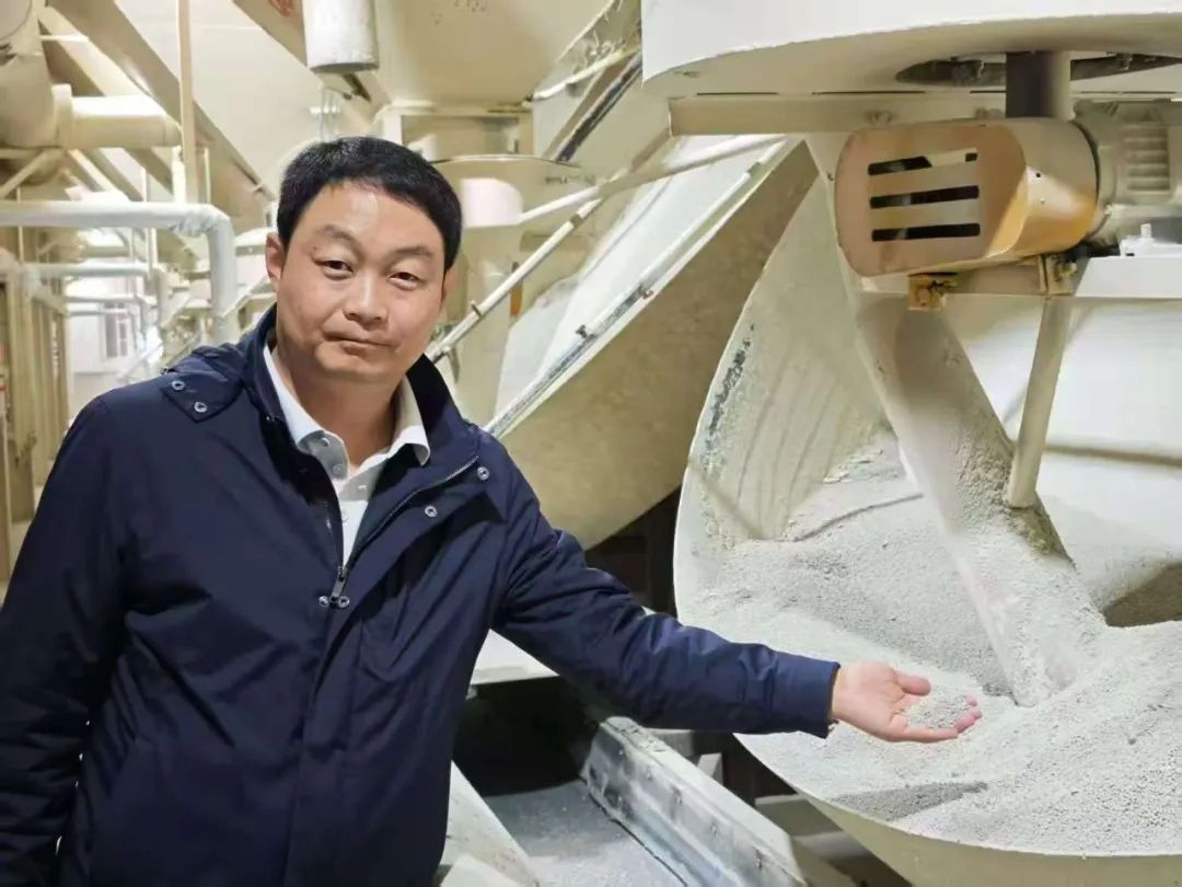 張文瀚向記者介紹膨潤(rùn)土貓砂生產(chǎn)流程