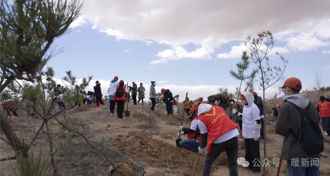 植樹(shù)活動(dòng)現(xiàn)場(chǎng),內(nèi)蒙古大學(xué)、內(nèi)蒙古師范大學(xué)、內(nèi)蒙古農(nóng)業(yè)大學(xué)等高校共計(jì)70余名來(lái)自蒙古、俄羅斯、巴基斯坦等7個(gè)國(guó)家的來(lái)華留學(xué)生參與其中,以實(shí)際行動(dòng)為大地添綠。他們兩人一組或三五成群,有的雙手緊握鐵鍬,奮力鏟土;有的則小心翼翼地扶著樹(shù)苗,確保樹(shù)苗保持直立。填土、澆水、扶正,各個(gè)環(huán)節(jié)銜接有序,配合默契,現(xiàn)場(chǎng)呈現(xiàn)出一片熱火朝天的勞動(dòng)景象。在大家的共同努力下,一棵棵充滿生機(jī)的樹(shù)苗扎根土地,種下綠色希望。