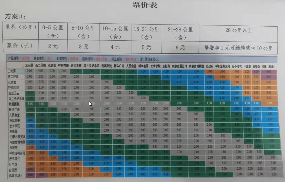 呼和浩特市軌道交通票制票價方案