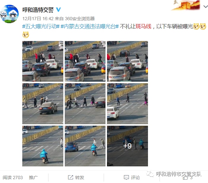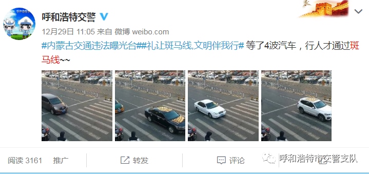 為實現(xiàn)斑馬線交通安全“三提升一下降”(機動車禮讓斑馬線和行人、非機動車守法意識明顯提升,輿論宣傳倡導“機動車禮讓斑馬線”的深度與廣度不斷提升,群眾對城市交通管理的滿意度顯著提升;因不禮讓斑馬線導致人員傷亡的交通事故發(fā)案率大幅下降)的目標,按照交管支隊關于開展集中整治機動車不禮讓斑馬線行動方案的統(tǒng)一部署,支隊指揮中心運用高科技手段,利用高清視頻探頭抓拍機動車不禮讓斑馬線等交通違法行為,并錄入道路交通管理綜合應用平臺。自2020年12月12日至12月31日,利用大屏監(jiān)控設備抓拍260條,錄入系統(tǒng)并予以曝光。