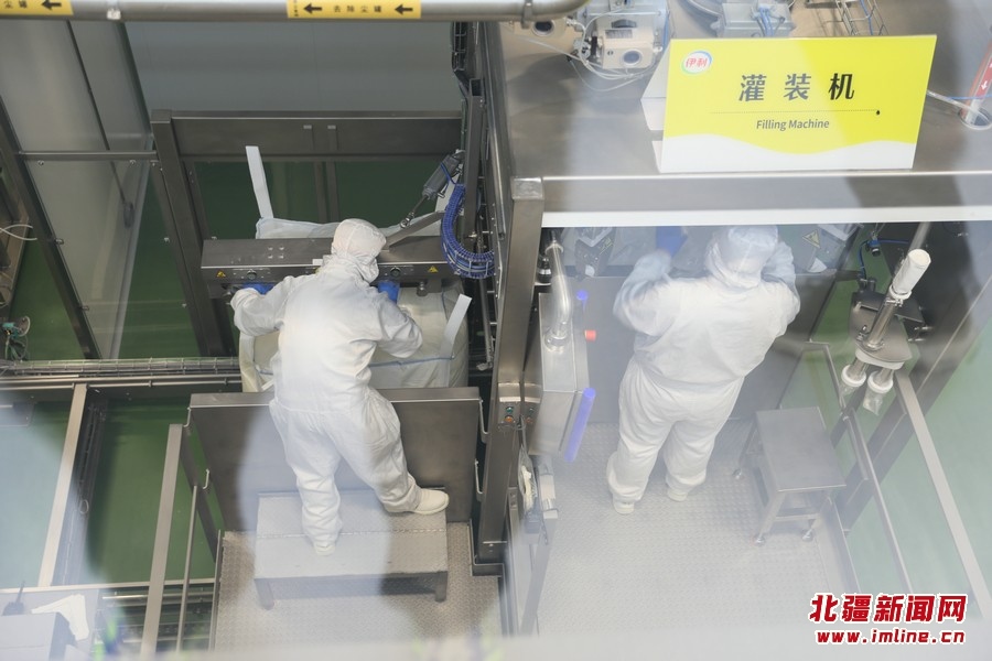 車間內(nèi)一派繁忙,液奶、奶粉生產(chǎn)線在高效運(yùn)轉(zhuǎn),貼管、分包、裝箱等工序一氣呵成,數(shù)字工廠、無菌車間、智能監(jiān)控等處處體現(xiàn)著現(xiàn)代化、智能化、生態(tài)化。