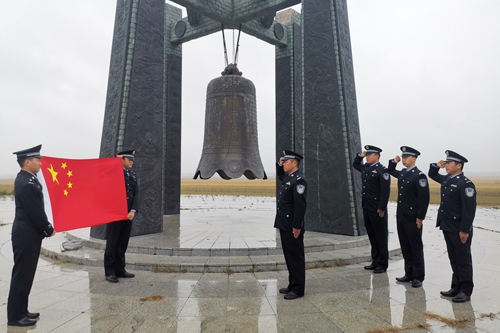 9月18日上午,內(nèi)蒙古諾門罕布日德邊境派出所在諾門罕戰(zhàn)役紀(jì)念廣場(chǎng)和平大鐘前開展“重溫人民警察誓詞”主題活動(dòng),紀(jì)念“九一八”事件89周年。
