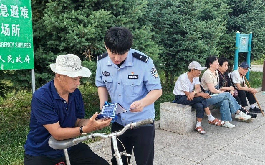 民警向居民宣傳預(yù)防電信網(wǎng)絡(luò)詐騙