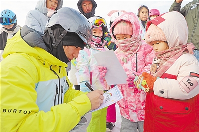 “十四冬”自由式滑雪公開組男子大跳臺冠軍楊昊回家鄉(xiāng)上滑雪公開課