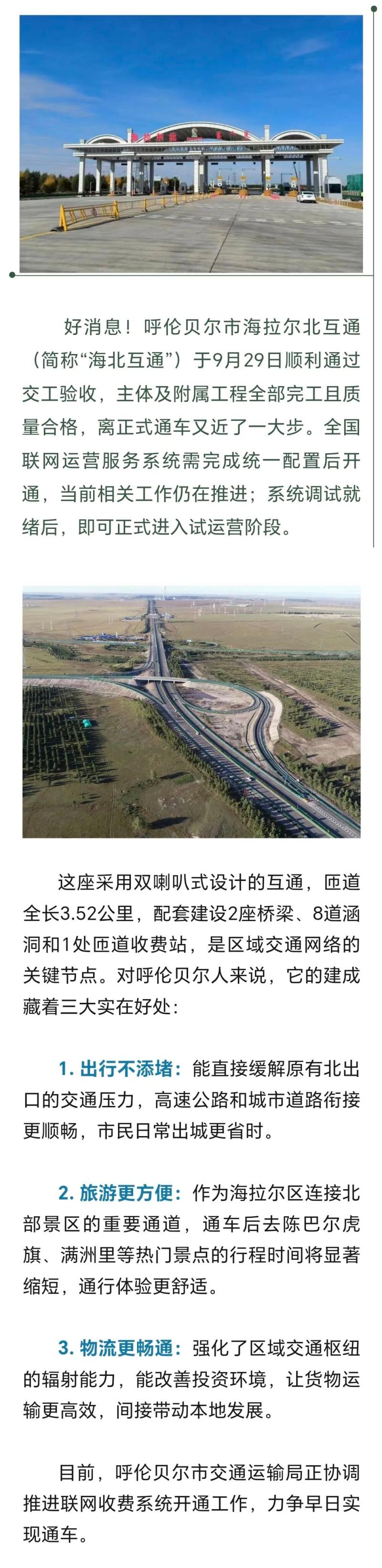 “海北互通”即將進(jìn)入試運營階段!去滿洲里和陳巴爾虎旗等地行程縮短
