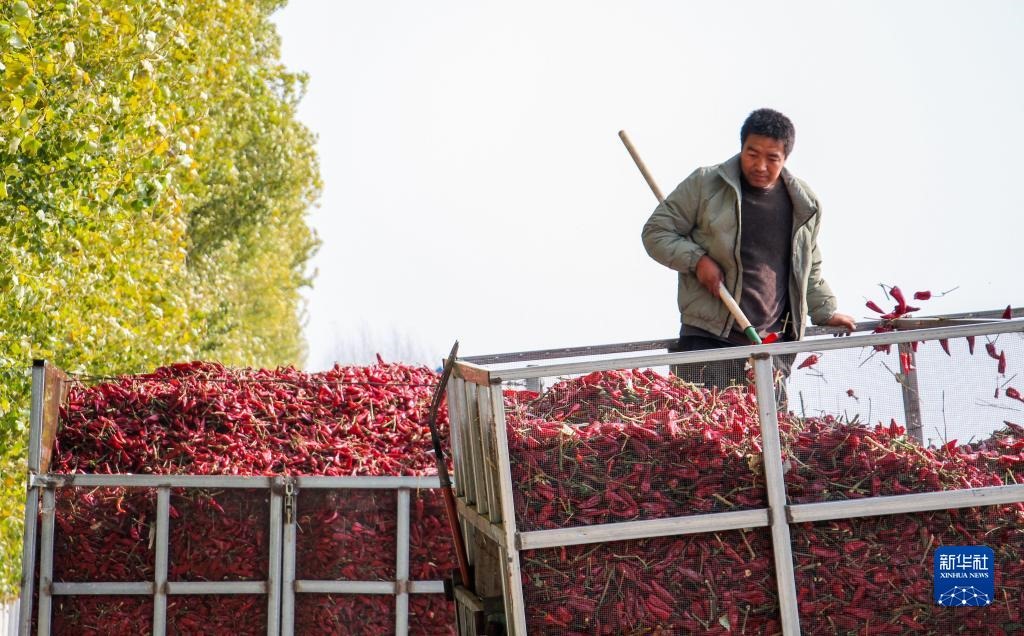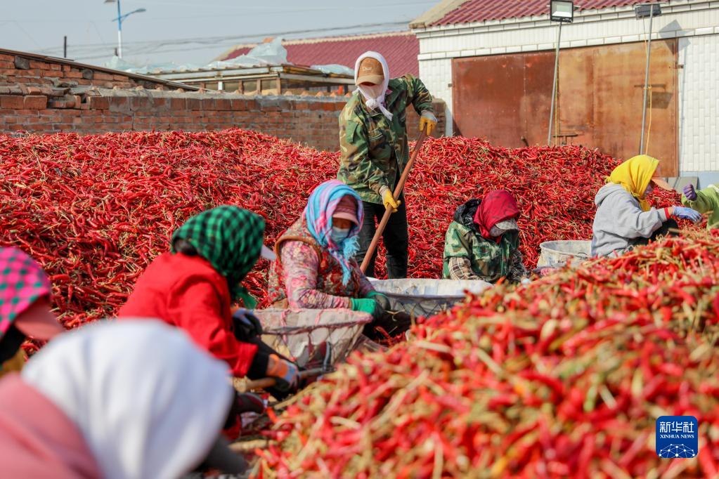 近日,內(nèi)蒙古通遼市開魯縣迎來紅干椒收獲銷售旺季。開魯縣紅干椒皮紅肉厚、品質(zhì)優(yōu)良,產(chǎn)品暢銷國內(nèi)外市場。近年來,開魯縣紅干椒種植面積穩(wěn)定在60萬畝。新華社記者 連振 攝