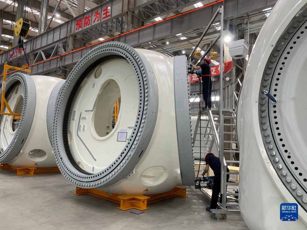 7月26日,工人在烏蘭察布運(yùn)達(dá)風(fēng)電有限公司廠房作業(yè)。新華社記者朱文哲 攝
