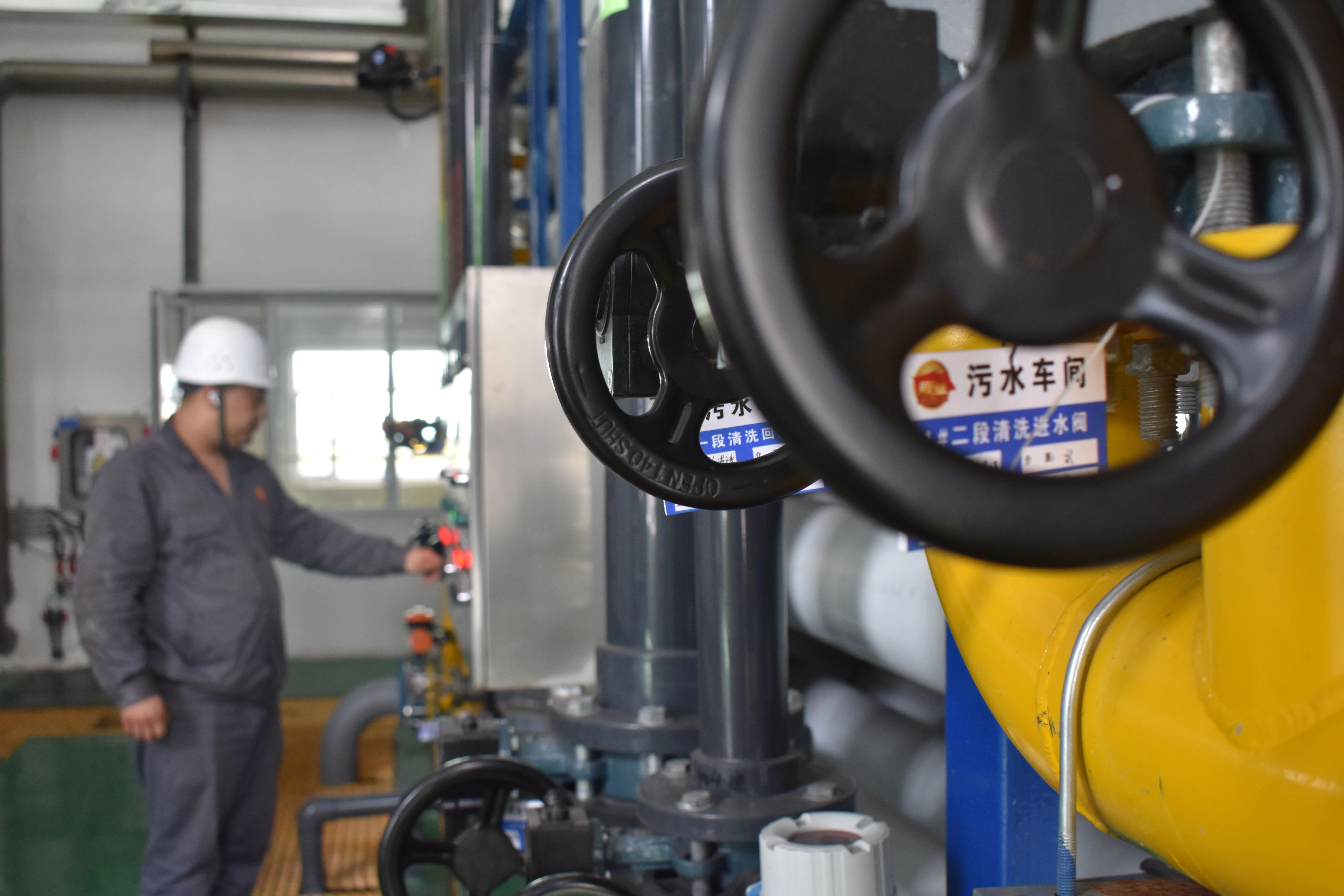 烏鋼污水處理車間內(nèi)工人正在操控設(shè)備