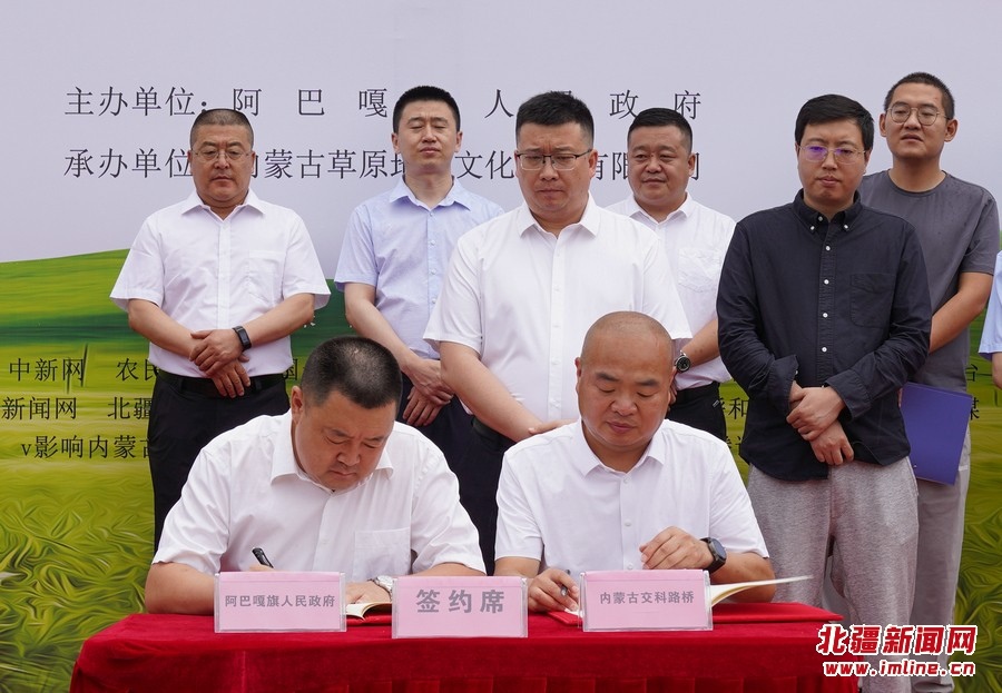 推介會(huì)現(xiàn)場(chǎng),阿巴嘎旗人民政府副旗長(zhǎng)李軍分別與內(nèi)蒙古交科路橋建設(shè)有限公司黨委書(shū)記、董事長(zhǎng)鈕英才,內(nèi)蒙古草原地圖文化傳播有限公司負(fù)責(zé)人王國(guó)柱簽訂戰(zhàn)略合作協(xié)議。
