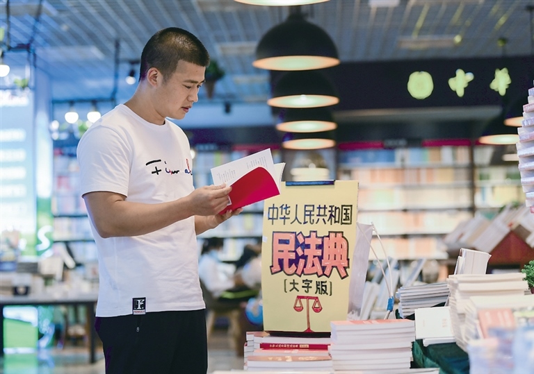 6月10日,呼和浩特市民在內(nèi)蒙古新華書(shū)店購(gòu)買(mǎi)《中華人民共和國(guó)民法典》。據(jù)工作人員介紹,《中華人民共和國(guó)民法典》自6月2日擺上貨架就十分吸引讀者目光,成為熱銷(xiāo)圖書(shū),截至目前該書(shū)店訂購(gòu)量已逾2000冊(cè)。攝影/北方新報(bào)正北方網(wǎng)記者 牛天甲