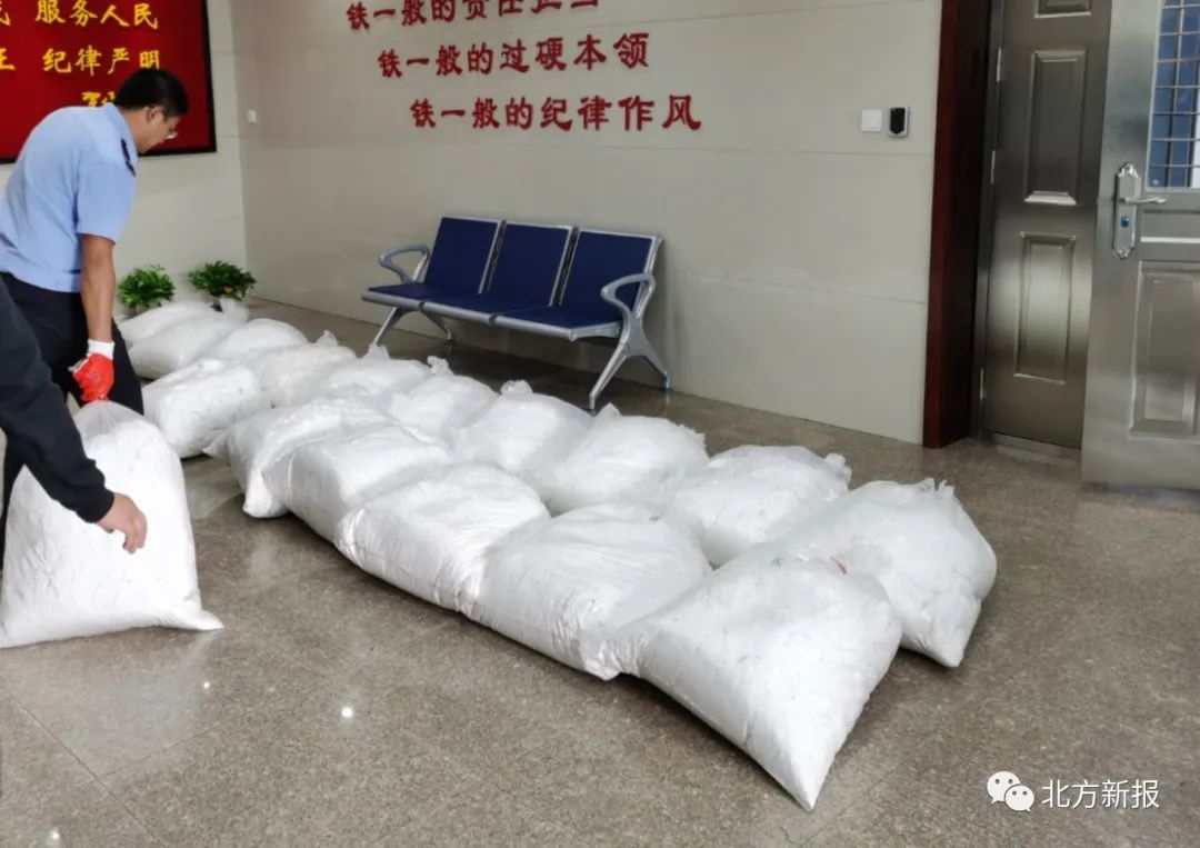 民警一路追蹤發(fā)現(xiàn),莊某駕駛的車輛未在山西省停留太久,又連夜返回包頭。有了前方的情報,專案組于9月13日凌晨5時,分為5個小組共30余警力,在黃河大橋收費站設卡進行堵截。民警提前封閉收費站車道,只留一條通過,因前后均有車輛,大大降低了嫌疑人駕車沖卡風險。清晨通行車輛本就不多,此舉并未引起嫌疑人警覺。當嫌疑車輛進入收費站的閘道時,潛伏民警立即沖上去將車輛司機控制,高某還未來得及下車逃跑,母子倆雙雙落網(wǎng)。專案組民警在莊某駕駛的車輛后備箱內(nèi)現(xiàn)場查獲毒品咖啡因30編織袋共750公斤。
