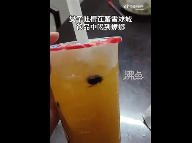 ·廣東一女子稱在蜜雪冰城中喝到大蟑螂,店家:正在核查,后續(xù)會給顧客交代。
