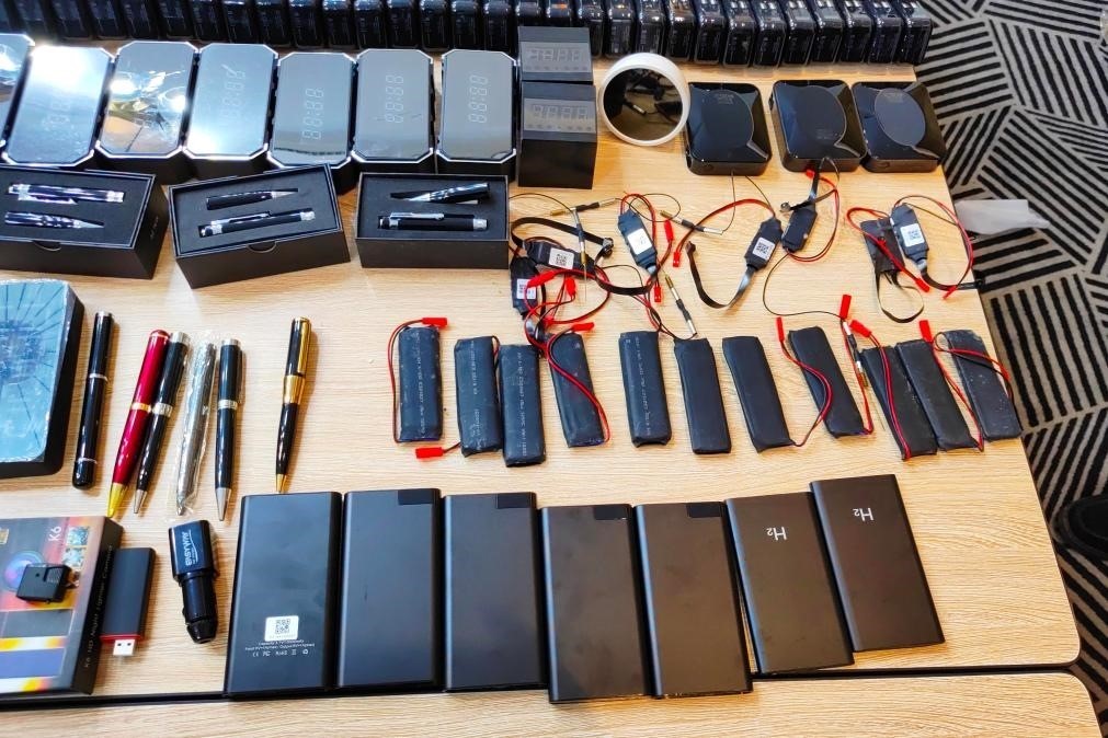 這是民警繳獲的偽裝成各類(lèi)生活用品的竊聽(tīng)竊照器材。(饒河縣公安局供圖)