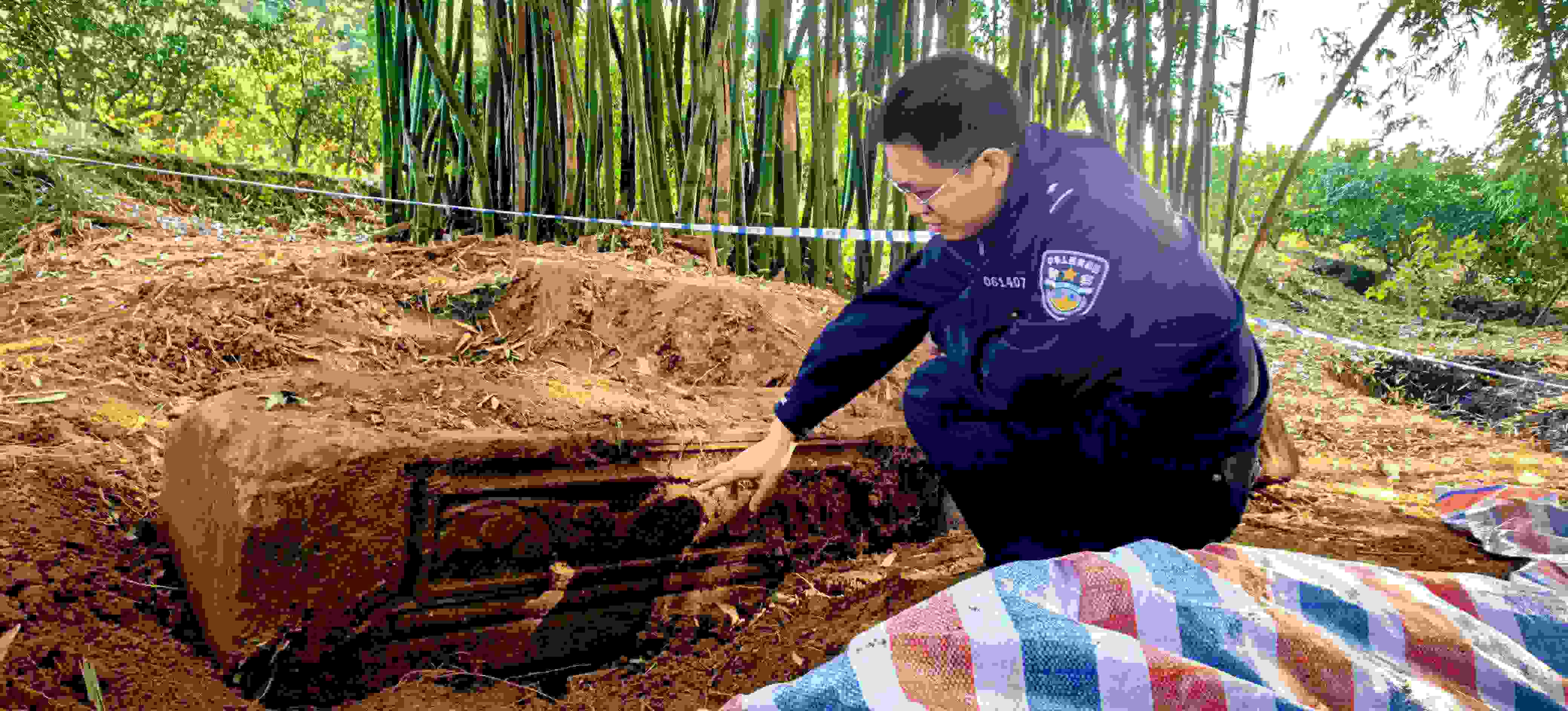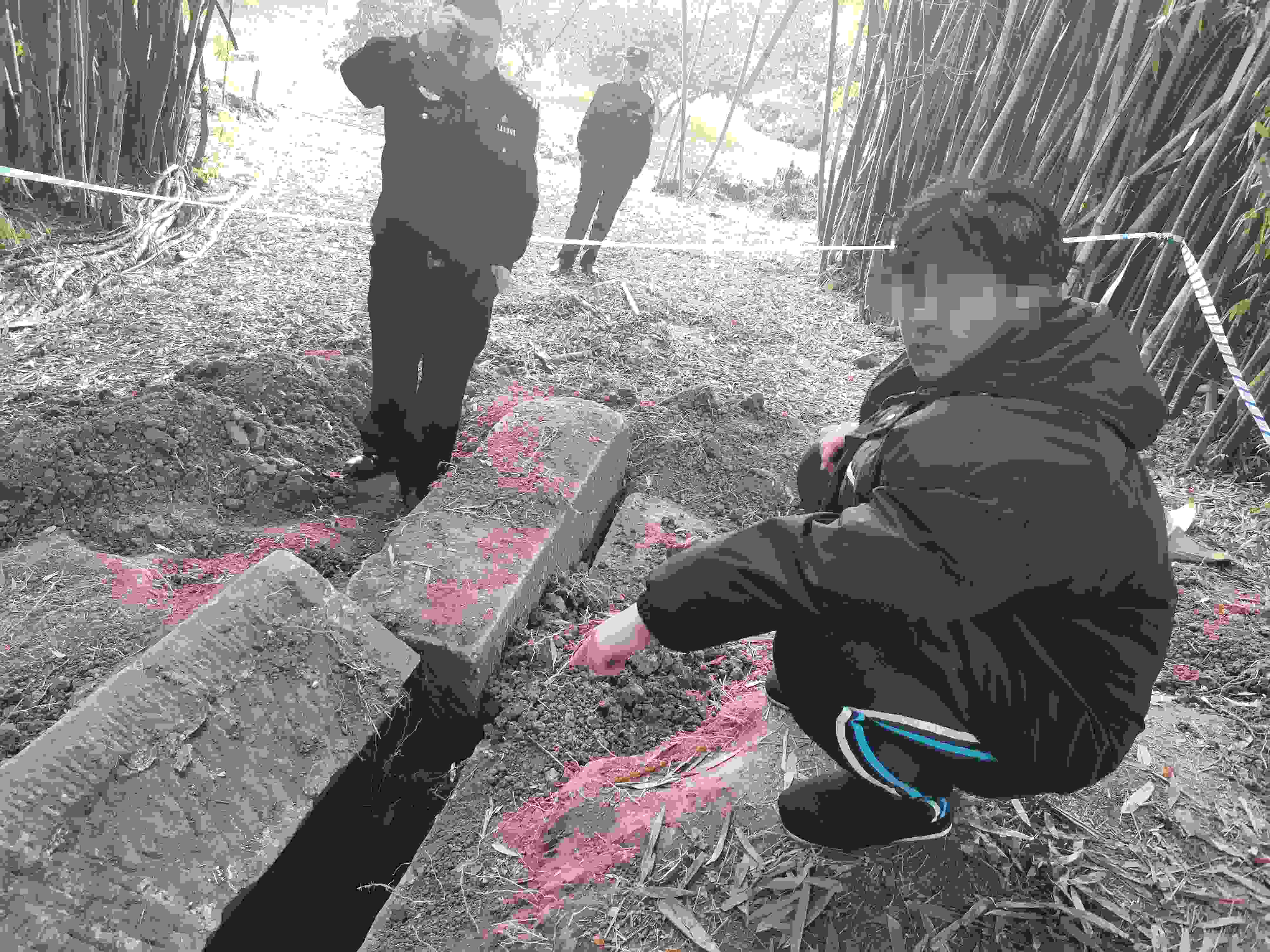 韓某家族的這座祖墳地處一片竹林中,離最近的房屋直線距離不足20米。為此,他趕到現(xiàn)場(chǎng)發(fā)現(xiàn),墓室上的土有多處被挖痕跡,但墓門上的石頭還沒(méi)被打開?!斑@個(gè)地方是條大路,白天也沒(méi)人看到有人來(lái)過(guò)?!表n某懷疑有人盯上了他家的祖墳,想要盜墓,并判斷那些人還會(huì)再來(lái)。