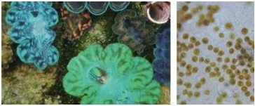 硨磲和珊瑚一樣,貝肉中共生著多種蟲黃藻,能在夜晚發(fā)出耀眼的熒光,五顏六色,非常漂亮。硨磲為蟲黃藻提供“住所”及光合作用原料,而蟲黃藻通過光合作用,為硨磲提供必要的營(yíng)養(yǎng)。