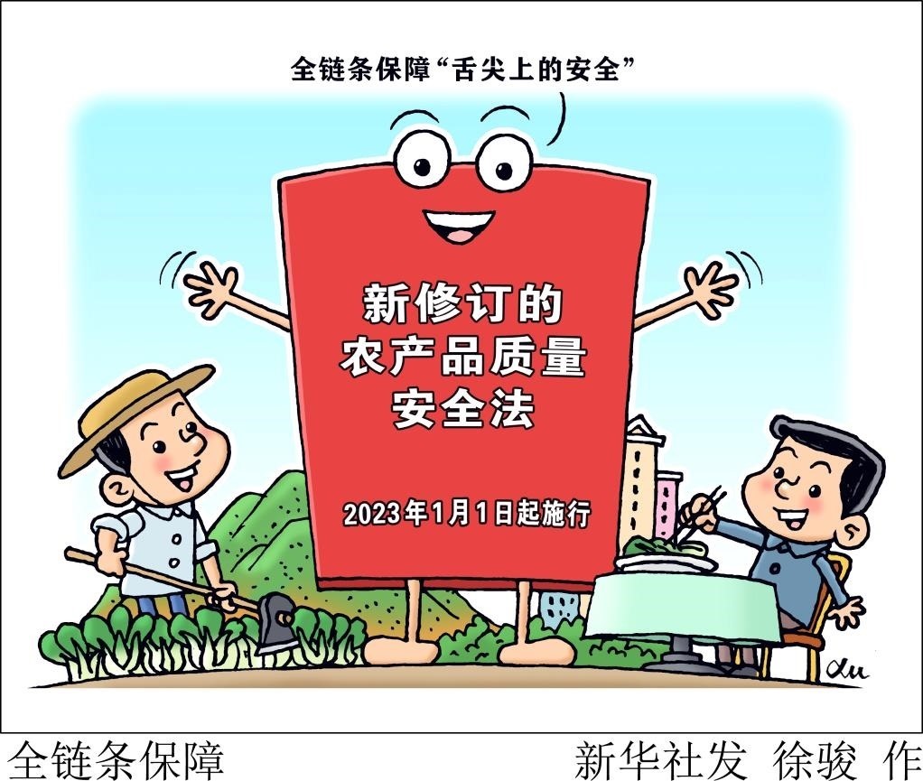 新版農(nóng)產(chǎn)品質(zhì)量安全法自1月1日起施行,實(shí)施農(nóng)產(chǎn)品質(zhì)量安全承諾達(dá)標(biāo)合格證制度,與食品安全法銜接,實(shí)現(xiàn)從田間地頭到百姓餐桌的全過(guò)程、全鏈條監(jiān)管。