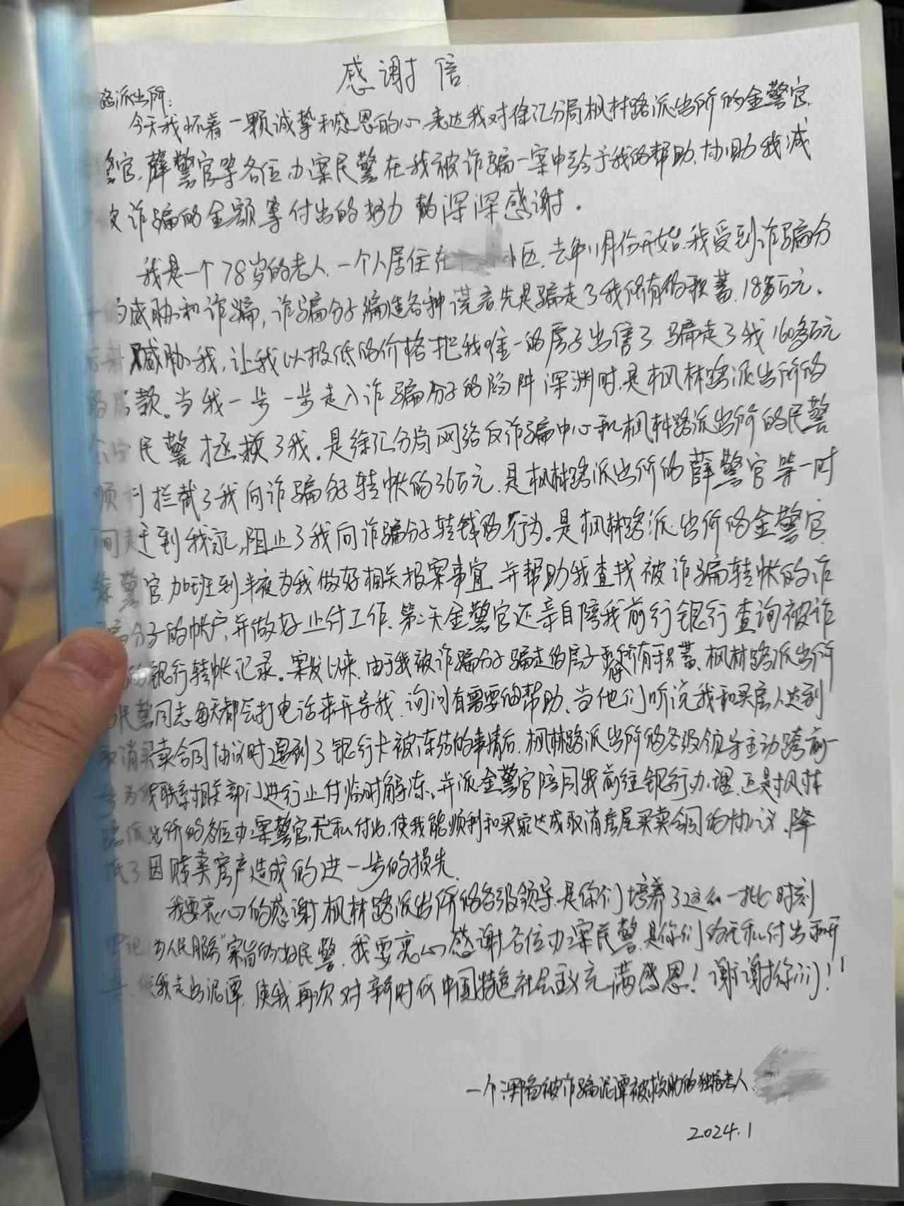 “我要衷心感謝各位辦案民警,是你們的無私付出和開導(dǎo),使我走出泥潭!”事后,市民劉女士向楓林路派出所民警送來感謝信。