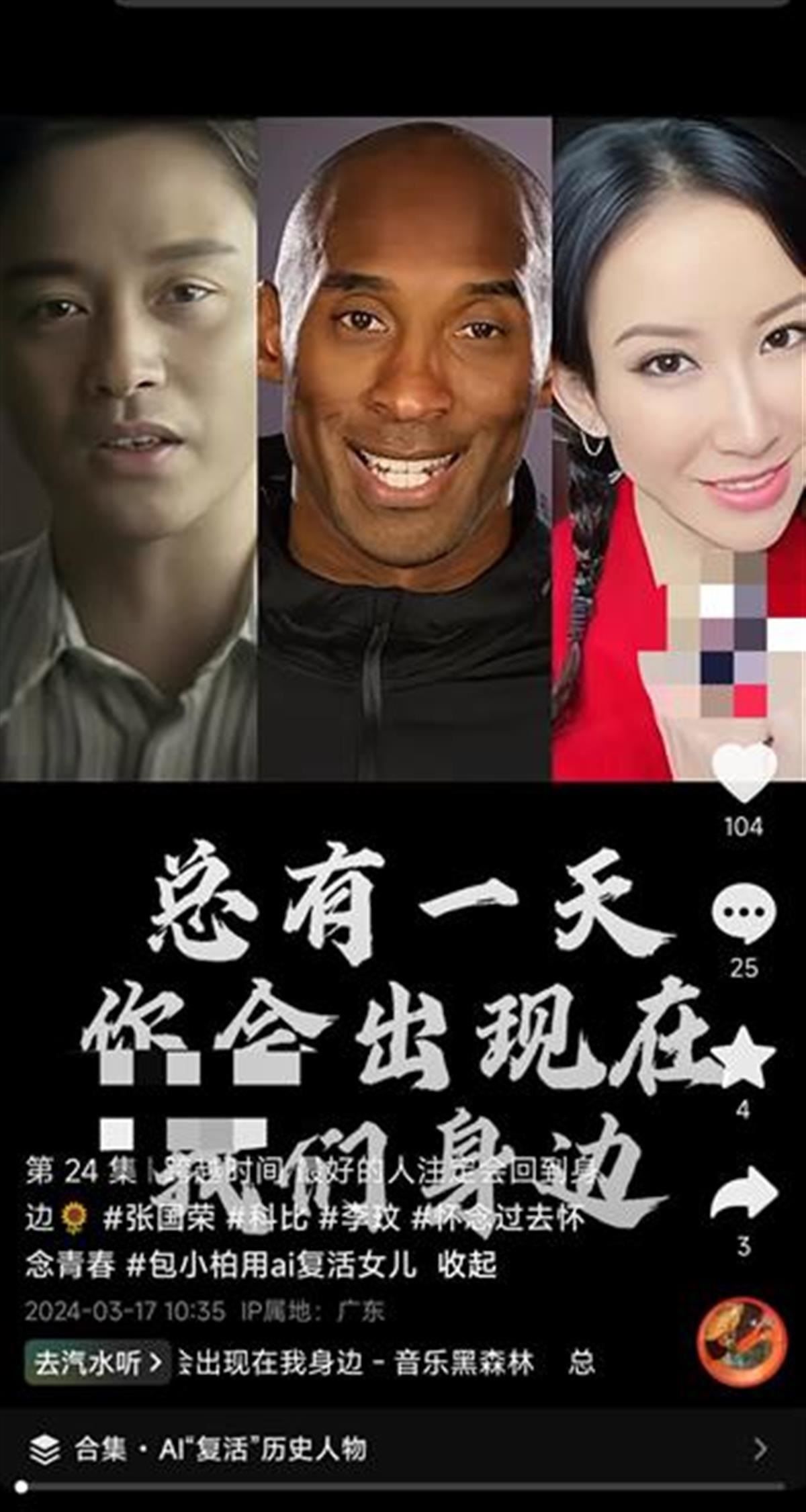 在社交平臺,類似的“AI復(fù)活師”賬號仍在活躍。這些賬號通過發(fā)布科比、李玟、張國榮等已逝名人的AI視頻吸引觀眾,并在簡介中聲稱可以通過AI技術(shù)定制數(shù)字人、克隆聲音、修復(fù)照片,還能“復(fù)活”已逝親人,定制他們的音頻視頻。目前,部分“AI復(fù)活師”的視頻已被平臺標(biāo)注“內(nèi)容疑似AI生成,請謹(jǐn)慎甄別”。
