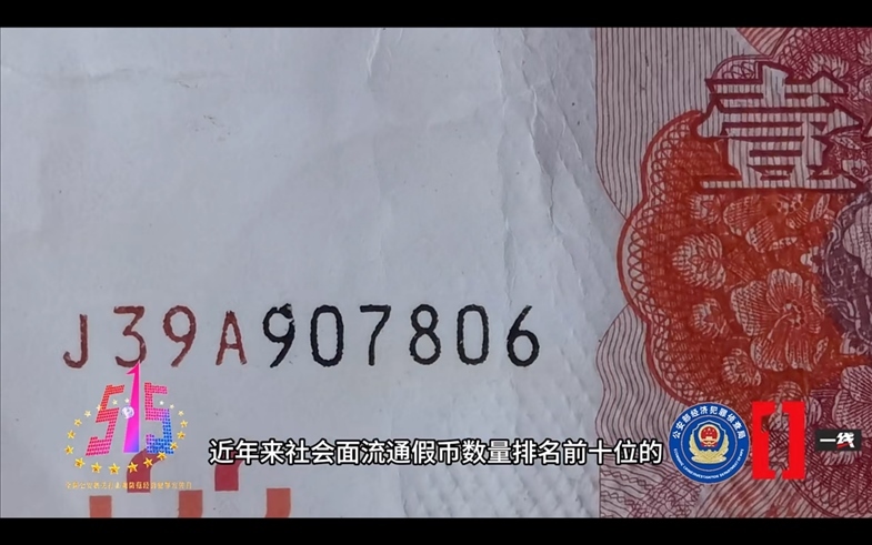央視報道的2023年度打擊經(jīng)濟犯罪十大典型案例中,關(guān)于該案涉及假幣的相關(guān)畫面。