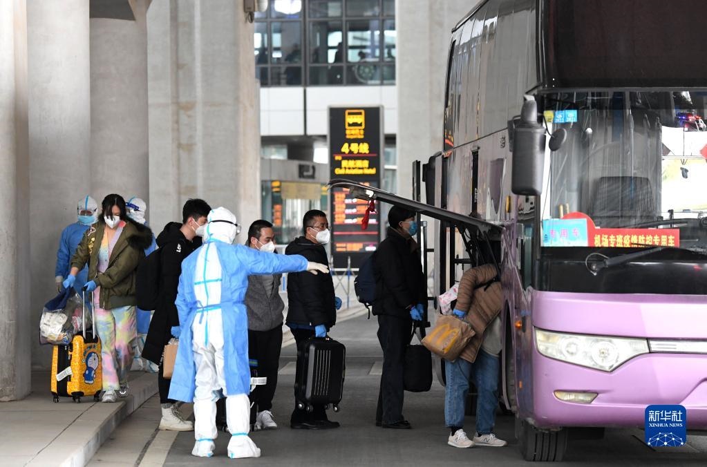 3月5日,抵達(dá)鄭州新鄭國際機(jī)場的中國公民準(zhǔn)備前往隔離酒店。當(dāng)日上午9時(shí)46分,第二架接返自烏克蘭撤離中國公民臨時(shí)航班安全抵達(dá)鄭州。新華社記者 郝源 攝