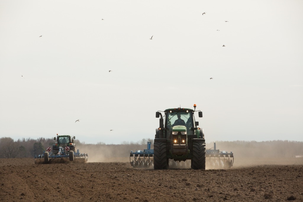 2021年4月15日,農(nóng)民在俄羅斯列寧格勒州一農(nóng)場(chǎng)內(nèi)播種春小麥。新華社發(fā)(莫京娜攝)
