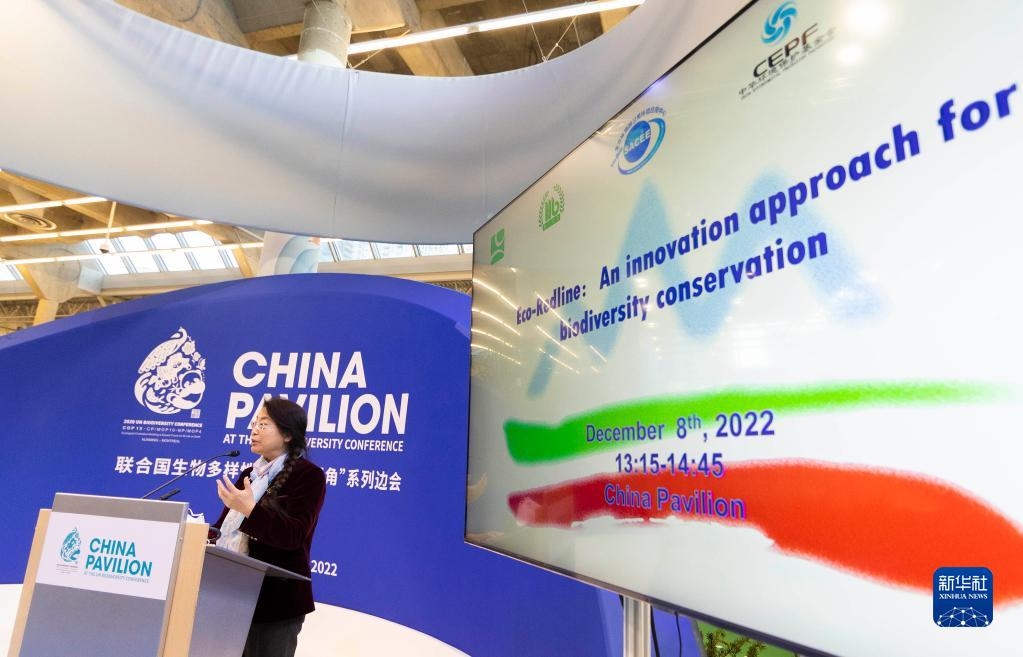 12月8日,在加拿大蒙特利爾舉行的《生物多樣性公約》第十五次締約方大會(huì)(COP15)第二階段會(huì)議上,中國(guó)角開(kāi)展的一場(chǎng)邊會(huì)活動(dòng)聚焦生態(tài)保護(hù)紅線。 新華社發(fā)(鄒崢攝)
