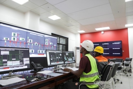 2月4日,在烏干達(dá)基里揚(yáng)東戈,卡魯瑪水電站的職員在水電站主開關(guān)站內(nèi)工作。新華社發(fā)