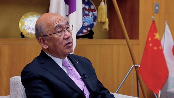 日本奈良縣知事荒井正吾接受人民網(wǎng)專訪。人民網(wǎng)視頻截圖