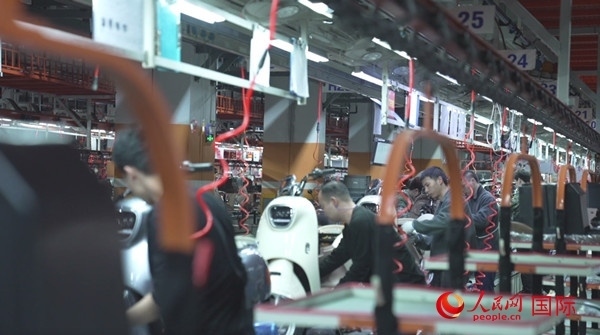 雅迪生產(chǎn)車間。人民網(wǎng) 彭昱凱 攝