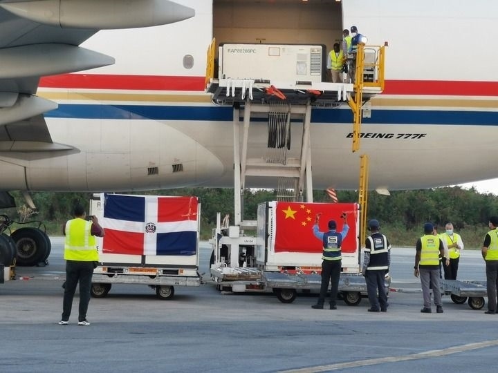 2021年3月17日,運載中國新冠疫苗等物資的飛機抵達(dá)多米尼加首都圣多明各。新華社發(fā)(中國駐多米尼加大使館供圖)