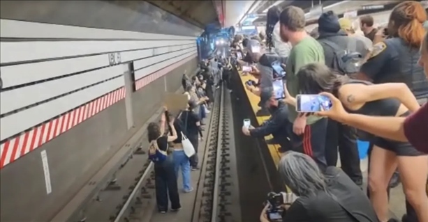 《紐約郵報(bào)》稱,視頻顯示,當(dāng)?shù)貢r(shí)間6日晚6時(shí)左右,在紐約市一地鐵站,多名抗議示威者跳入地鐵軌道,將迎面駛來的地鐵逼停??棺h者高呼“沒有正義,沒有和平”,而在背景聲音中,可以聽到警察試圖呼吁維持秩序。這群示威者呼吁為尼利討回公道。這一危險(xiǎn)舉動導(dǎo)致該地鐵站暫時(shí)停運(yùn)。
