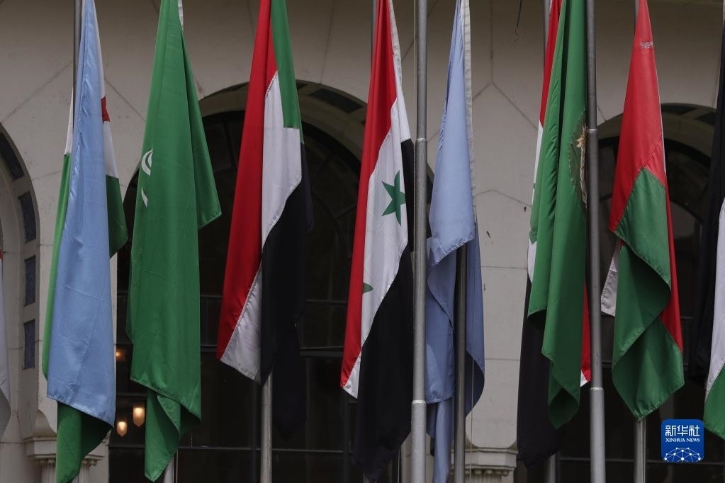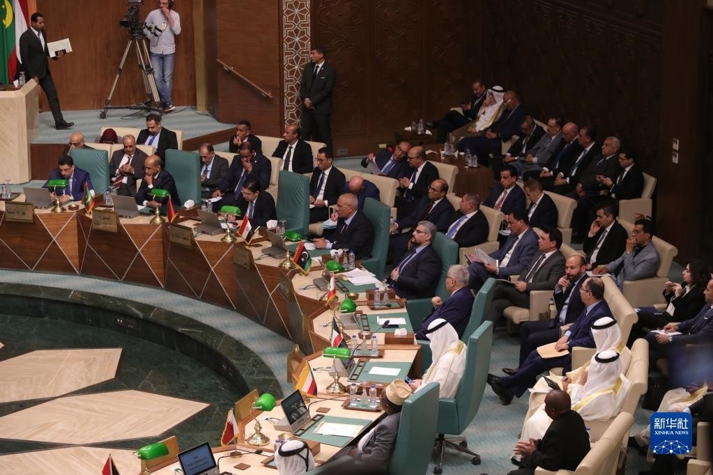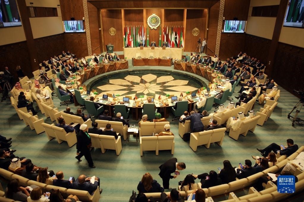 這是5月7日在埃及開羅拍攝的阿拉伯國(guó)家聯(lián)盟外長(zhǎng)級(jí)特別會(huì)議現(xiàn)場(chǎng)。