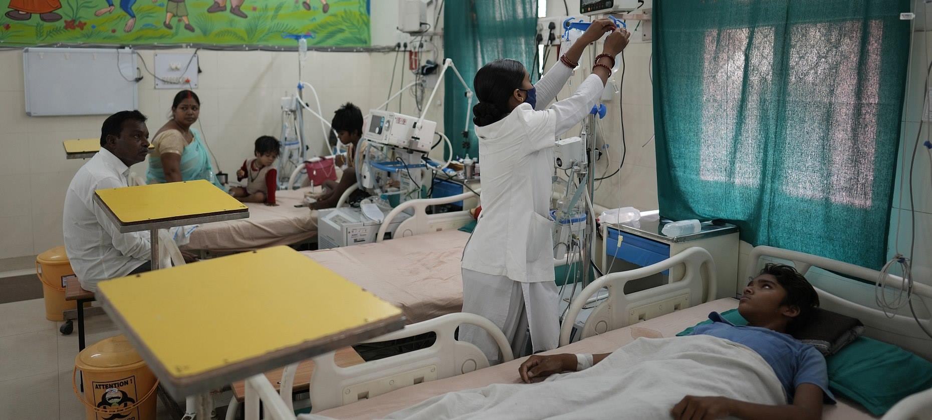 當(dāng)?shù)貢r間2022年4月24日,印度普拉亞格拉杰,高溫持續(xù),很多孩子因中暑在醫(yī)院治療。
