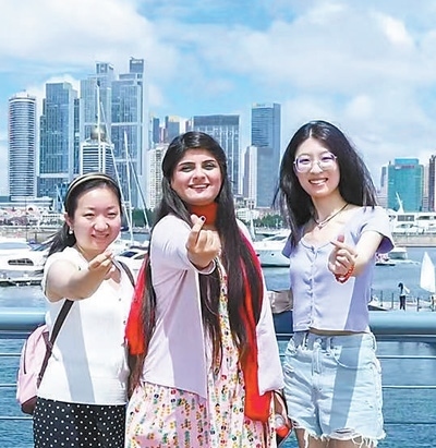 娜菲薩·穆潔(中)在山東青島參觀。以上圖片均為受訪者提供