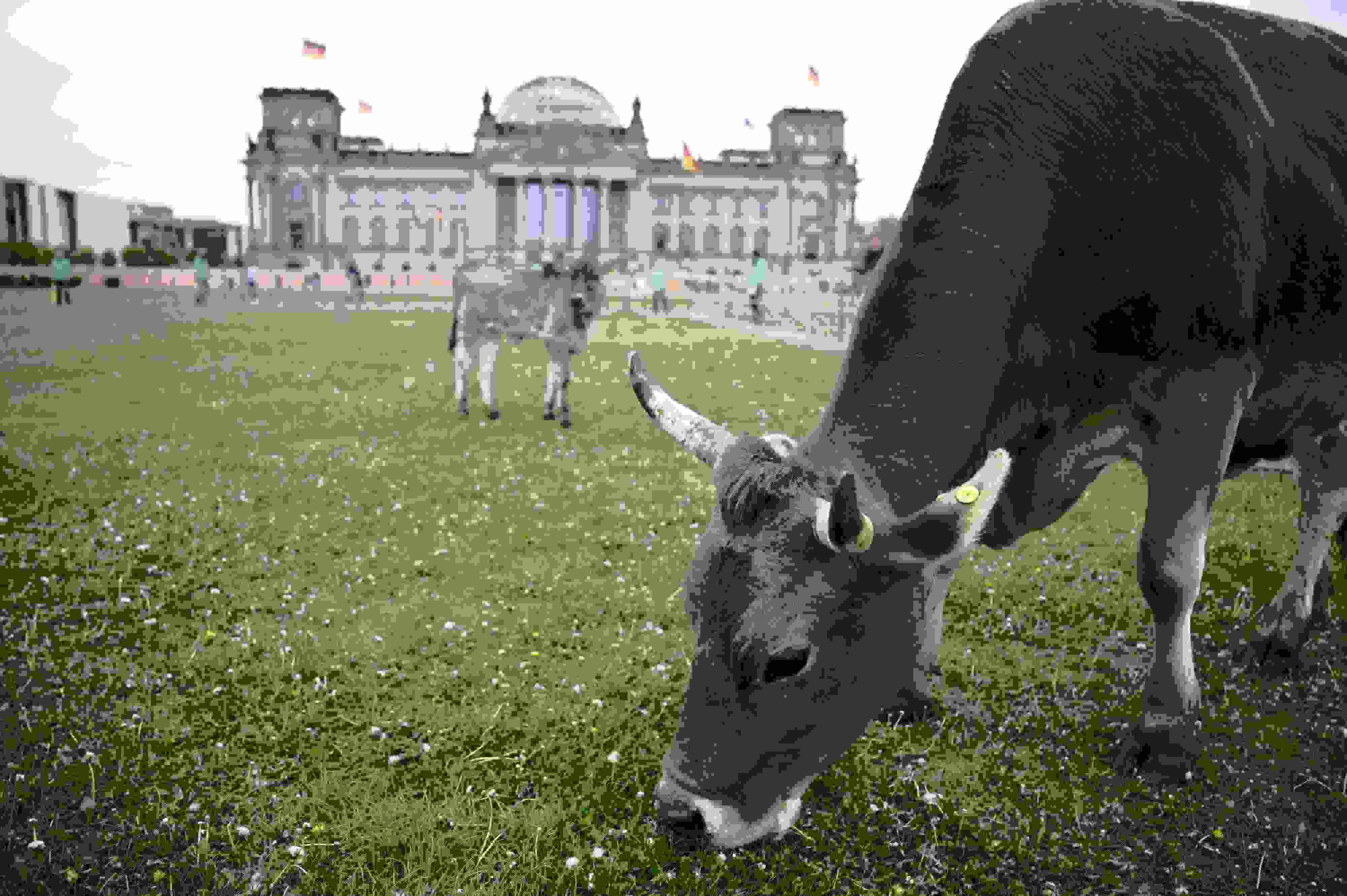 德國(guó):牛群國(guó)會(huì)大廈前吃草