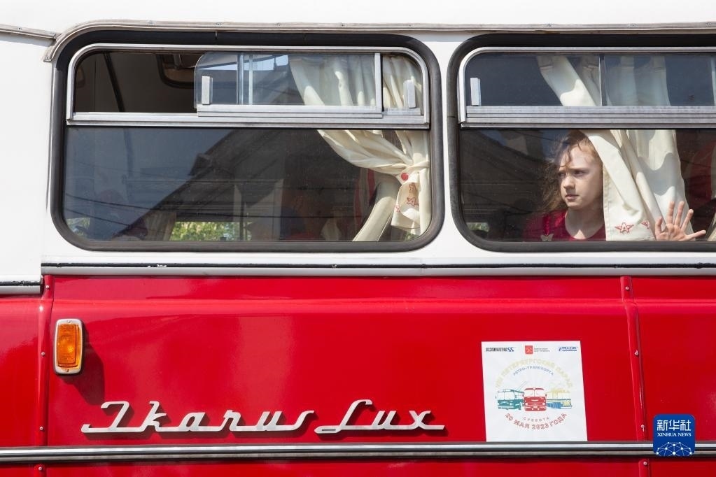 5月20日,各式老爺車在俄羅斯圣彼得堡街頭巡游。