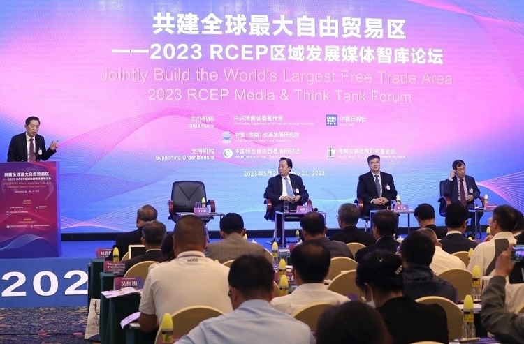 人民網(wǎng)???月21日電 (記者苑基榮)《區(qū)域全面經(jīng)濟(jì)伙伴關(guān)系協(xié)定》(以下簡稱RCEP)正式生效實施一年多來,其促進(jìn)區(qū)域貿(mào)易投資增長與經(jīng)濟(jì)復(fù)蘇的紅利不斷釋放。5月21日,中共海南省委宣傳部、中國日報社、中國(海南)改革發(fā)展研究院在??诠餐鬓k“共建全球最大自由貿(mào)易區(qū)——2023 RCEP區(qū)域發(fā)展媒體智庫論壇”。來自中國、韓國、日本、新加坡、菲律賓、老撾、緬甸、柬埔寨、馬來西亞、印度尼西亞、澳大利亞、英國等國家的主流媒體、智庫人士以及國際組織、駐華使館官員和企業(yè)界共450余位代表參加本次論壇,共同圍繞“共建全球最大自由貿(mào)易區(qū)”分享觀點(diǎn)、交流思想,為推動區(qū)域交流合作積極建言獻(xiàn)策。