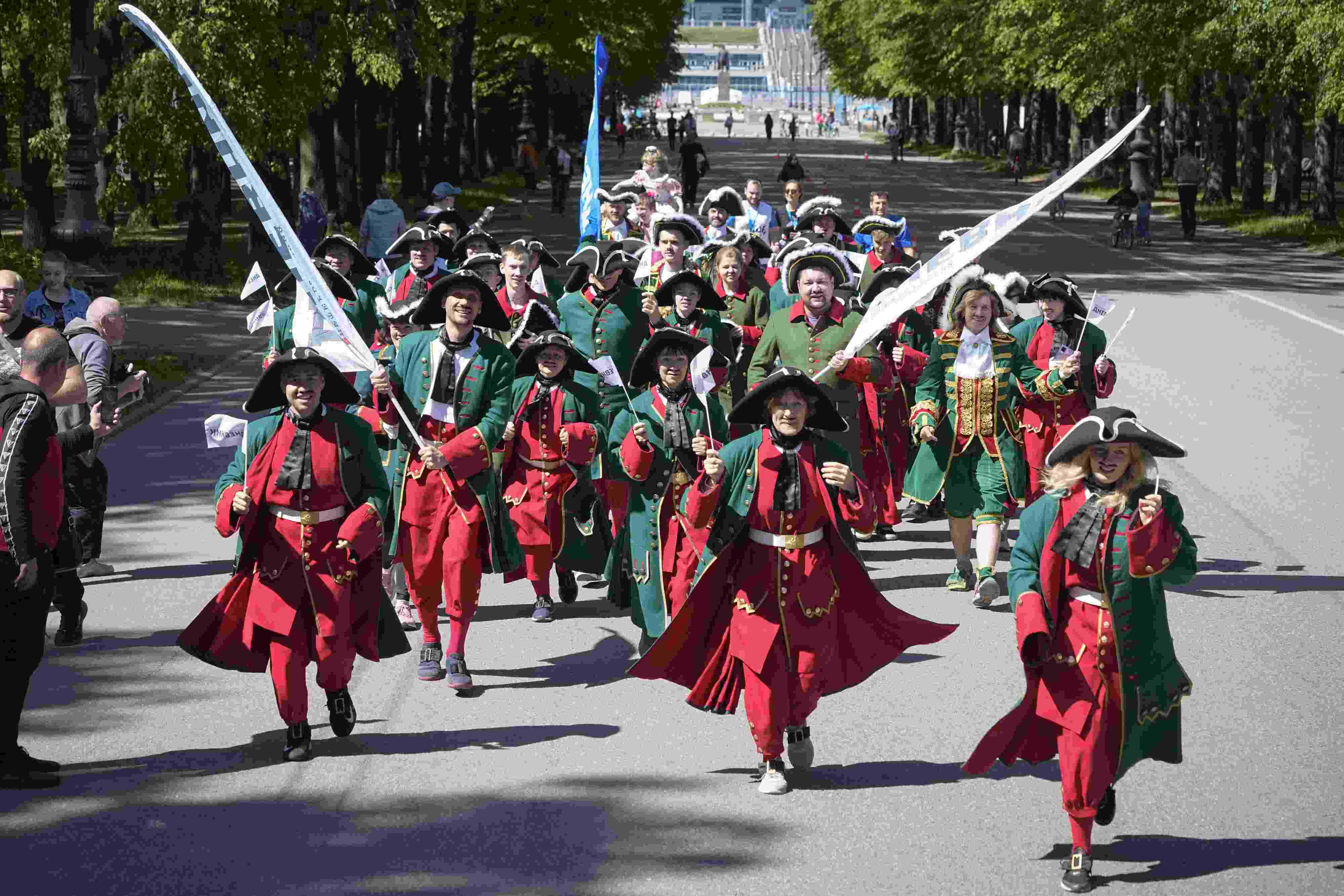當?shù)貢r間2023年5月28日,俄羅斯圣彼得堡,人們身著傳統(tǒng)服飾慶祝圣彼得堡建城320周年。 視覺中國
