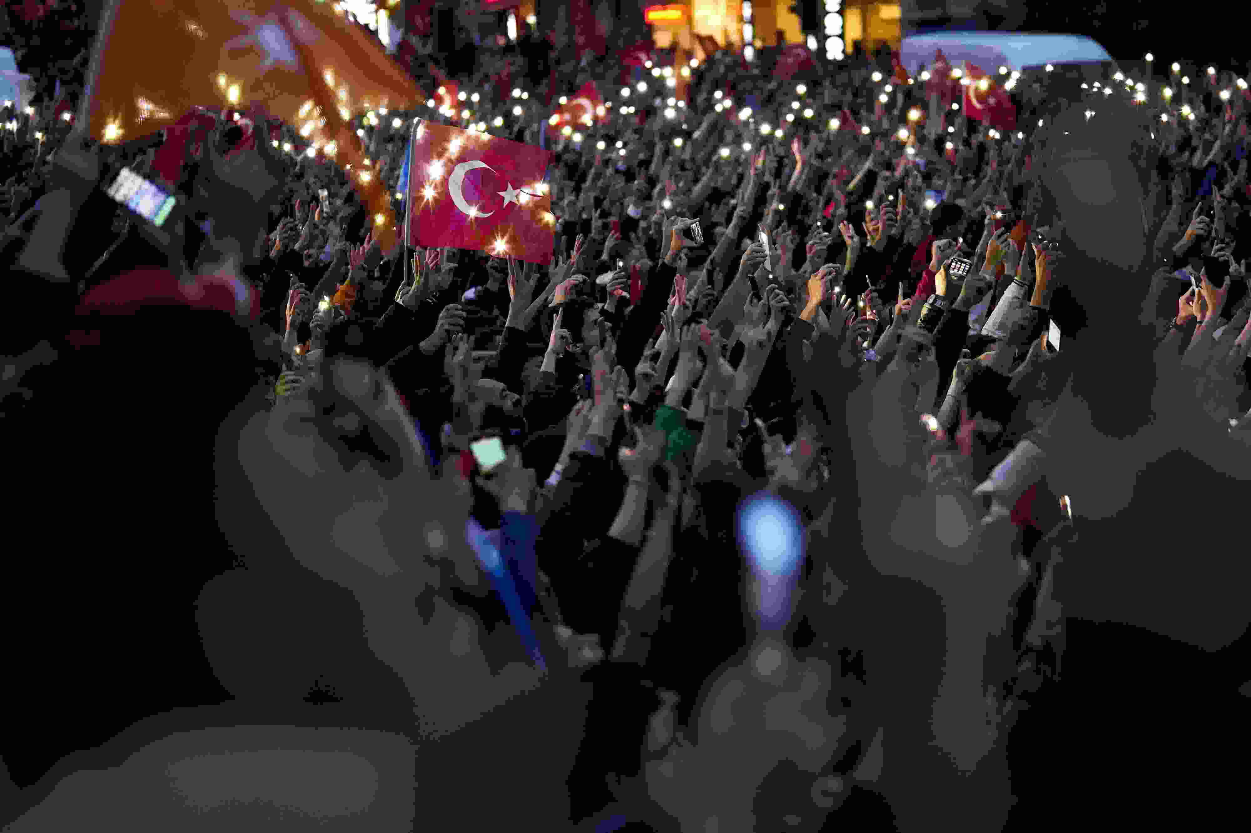 當(dāng)?shù)貢r(shí)間2023年5月28日,土耳其伊斯坦布爾,埃爾多安的支持者慶祝其再次當(dāng)選土耳其總統(tǒng)。土耳其最高選舉委員會(huì)主席艾哈邁德·耶內(nèi)爾28日深夜在首都安卡拉宣布,根據(jù)初步計(jì)票結(jié)果,現(xiàn)任總統(tǒng)埃爾多安在28日舉行的總統(tǒng)選舉第二輪投票中戰(zhàn)勝對(duì)手,再次當(dāng)選總統(tǒng)。 視覺中國(guó)
