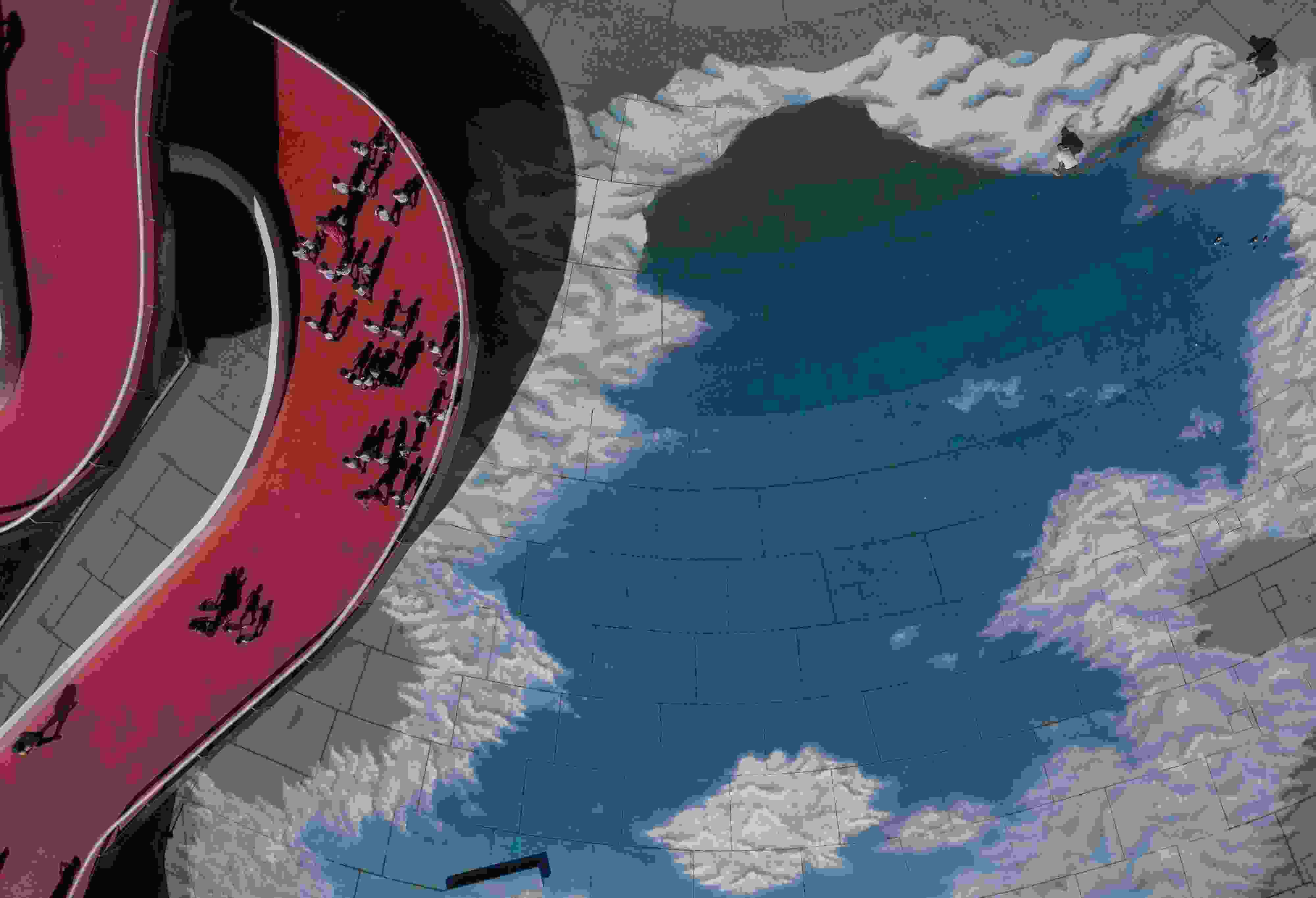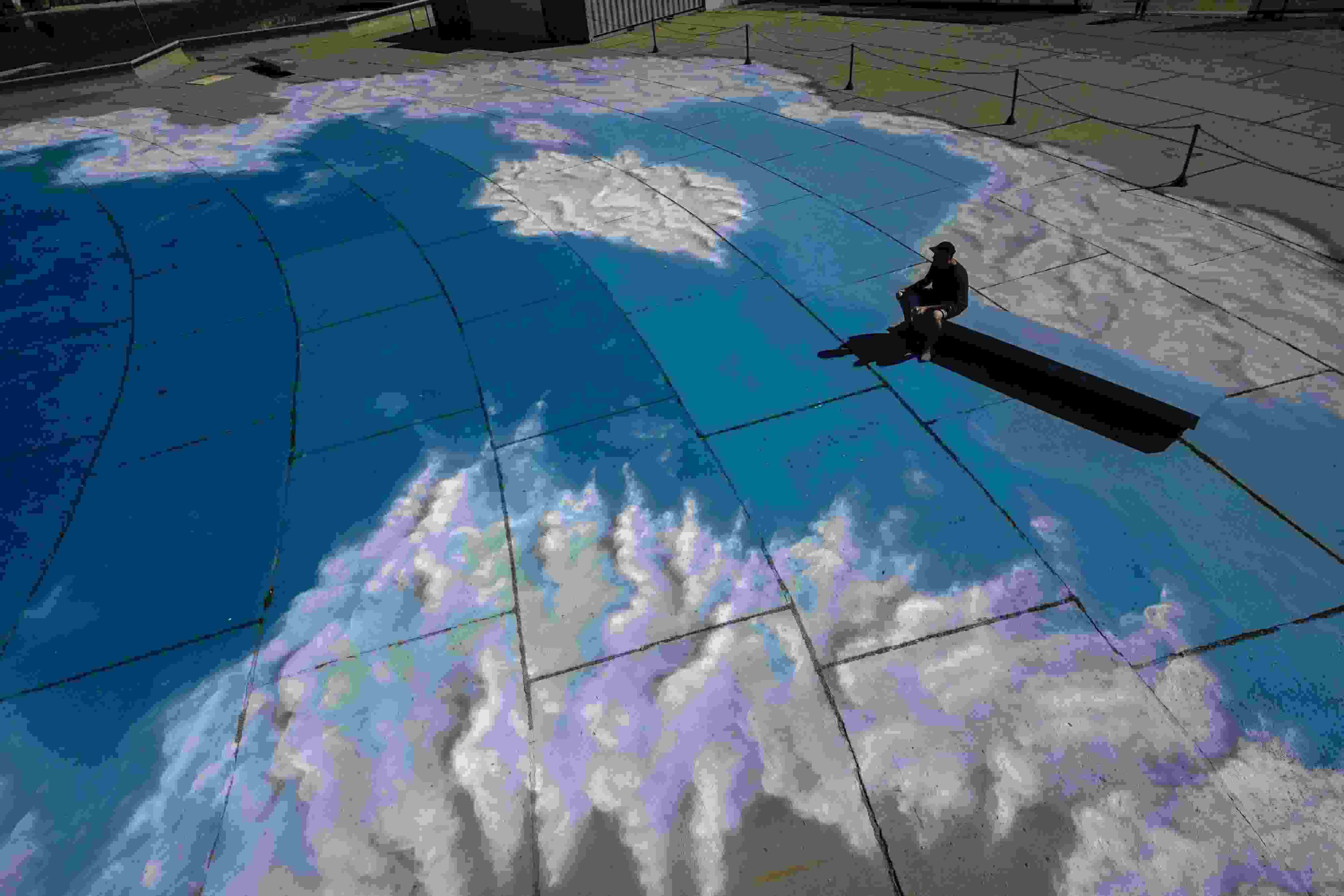 當(dāng)?shù)貢r(shí)間2023年6月6日,巴西里約熱內(nèi)盧,藝術(shù)家在地面上繪制“藍(lán)天白云”。 視覺(jué)中國(guó)