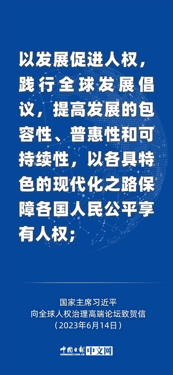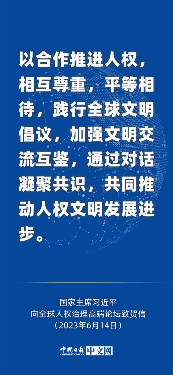 6月14日,國家主席習近平向全球人權治理高端論壇致賀信。習近平指出,當前,人類又一次站在歷史的十字路口,全球人權治理面臨嚴峻挑戰(zhàn)。我們主張: