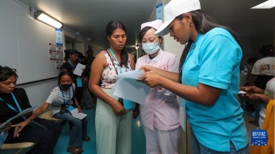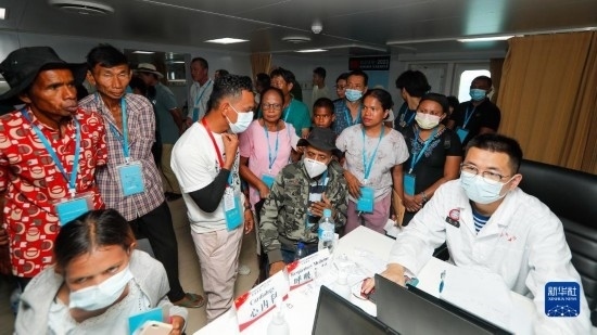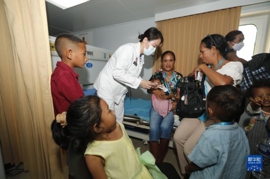 中國(guó)海軍“和平方舟”號(hào)醫(yī)院船訪問(wèn)東帝汶并開展醫(yī)療服務(wù)期間,醫(yī)院船醫(yī)護(hù)人員為當(dāng)?shù)孛癖娞峁┽t(yī)療服務(wù)(9月8日攝)。新華社發(fā)(黎宇 攝)