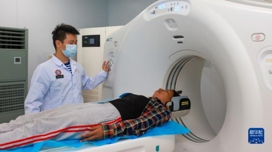中國(guó)海軍“和平方舟”號(hào)醫(yī)院船訪問(wèn)東帝汶并開展醫(yī)療服務(wù)期間,醫(yī)院船醫(yī)護(hù)人員為當(dāng)?shù)孛癖娺M(jìn)行CT檢查(9月6日攝)。新華社發(fā)(陳云飛 攝)