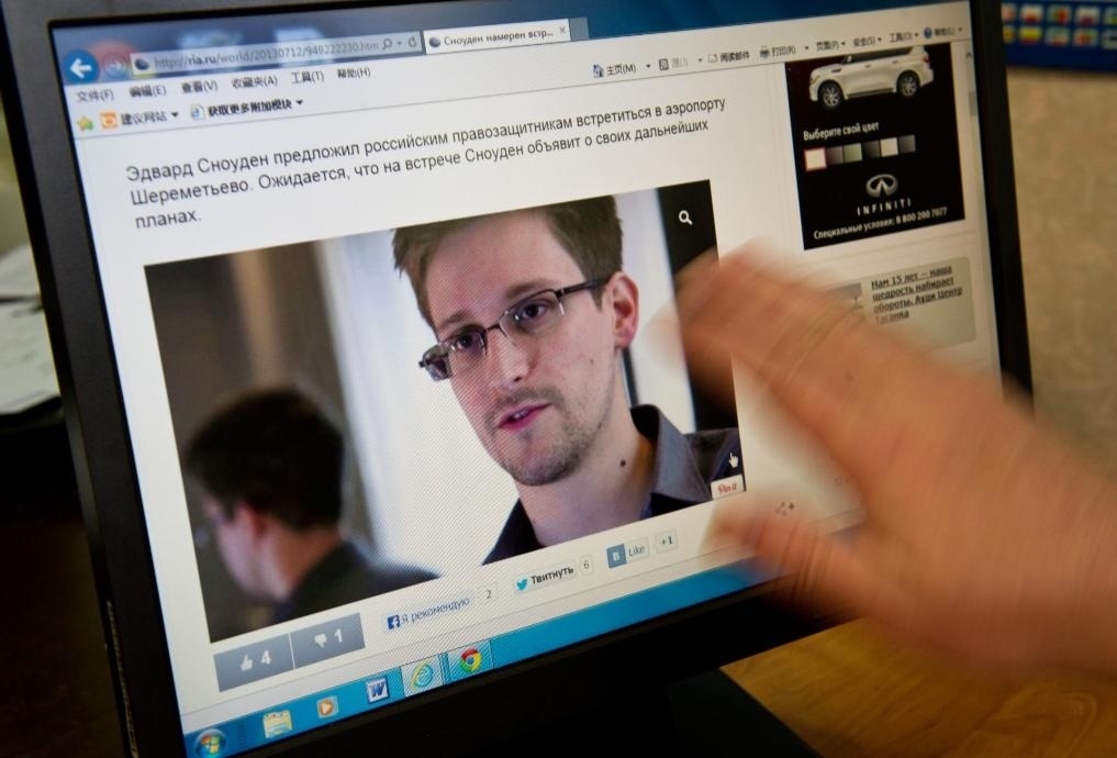 2013年7月12日,新聞工作者在俄羅斯首都莫斯科打開(kāi)網(wǎng)頁(yè)瀏覽斯諾登的訊息。新華社記者姜克紅攝