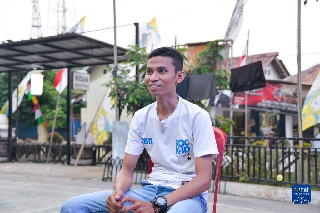 8月13日,在印度尼西亞普哇加達縣蘇卡加亞村,村長助理佩爾馬納接受新華社記者采訪。新華社記者 徐欽 攝
