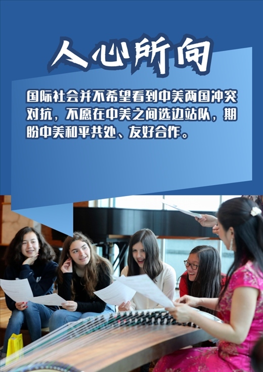 國(guó)際社會(huì)普遍希望中美緩和緊張,期待雙方可以本著對(duì)歷史、對(duì)人民、對(duì)世界負(fù)責(zé)的態(tài)度相向而行、妥處分歧,找到正確相處之道。